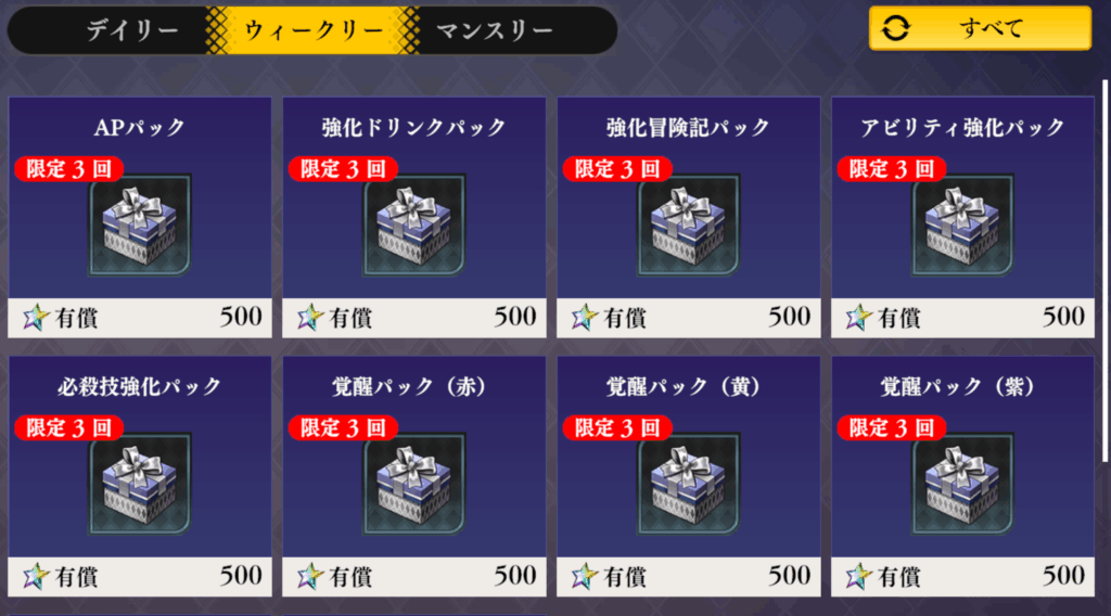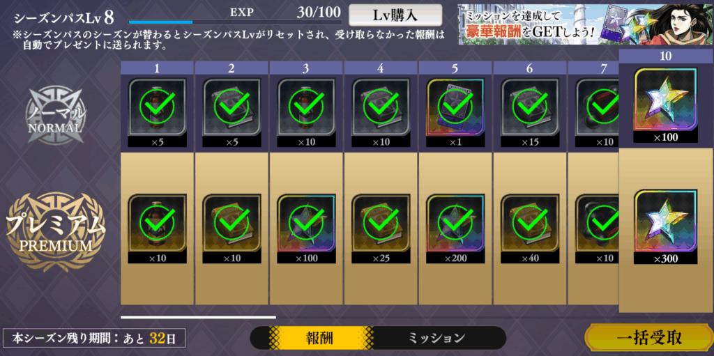 購入済み画像で分かりずらくて申し訳ないです。プレミアムが有償石限定で有償石500で購入できます。報酬をまとめると