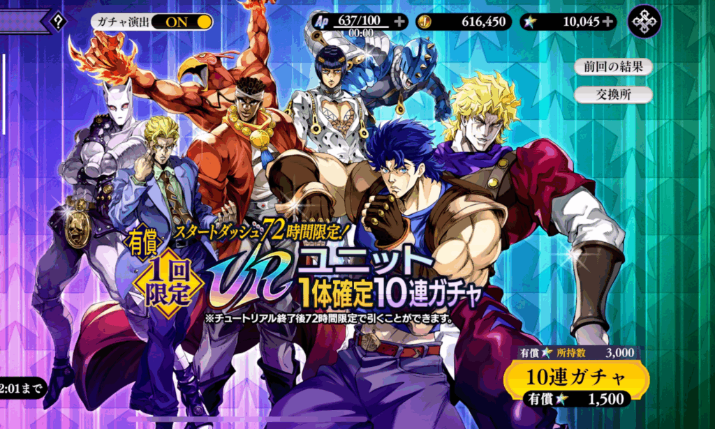 DIOガチャで開催されませんでした。これからしばらくは開催しない方針でしょうか…大型イベントでのみ開催されるようになるかもしれません。