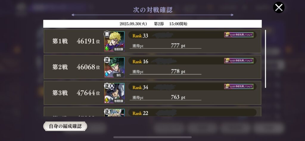 つまり「対戦相手が確認できるころにはこちらの編成も変更ができないという仕様になっていると考えられます。(暫定)
